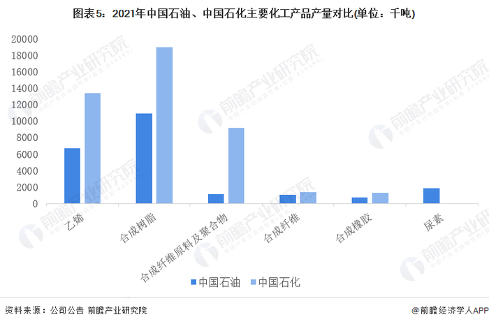 从主要化工产品产量来看,2021年中国石化在主要化工产品产量上大幅领先,而中国石油仅有尿素产量更高。