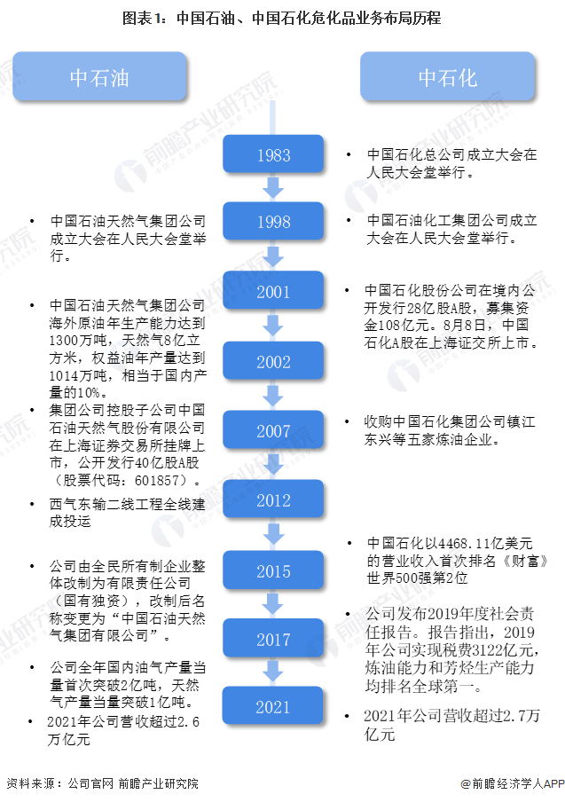 目前,中国危化品行业龙头企业分别是中国石油、中国石化,两家企业在危化品业务上的布局历程如下:
