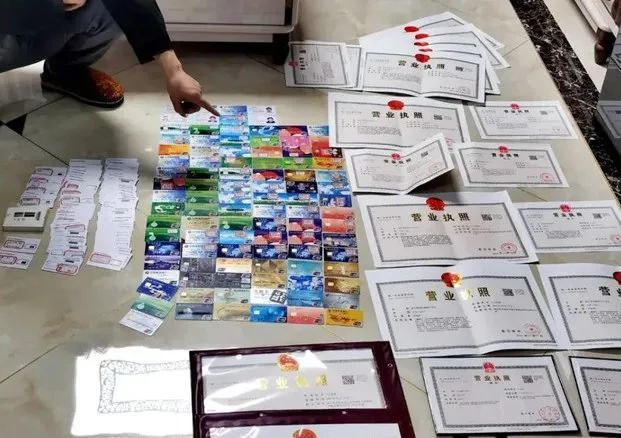 浙江省公安厅在“断卡行动”中收缴的银行卡及营业执照