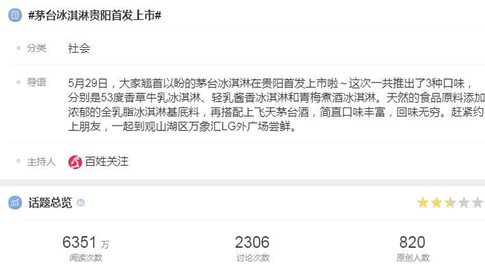 茅台毕竟是极具国民关注度的白酒品牌,此次跨界到冰淇淋市场,瞬间在社交平台也掀起广泛讨论。有网友调侃,“这冰淇淋收藏十年能涨价吗?”还有人关注的是,“吃了茅台冰淇淋能不能开车,算不算酒驾?”