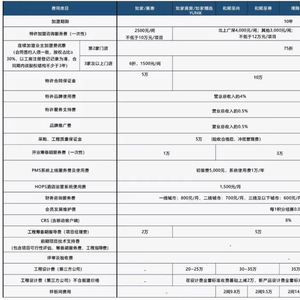 在固定项目费用中,经济型品牌特许加盟咨询服务费的收费标准是2500元/间,100间客房来计算,这笔一次性费用需要25万元;而中端以及中高端品牌,该项目收费标准就深圳一线城市而言,在4000元/间,100间客房一次性费用需要40万元。