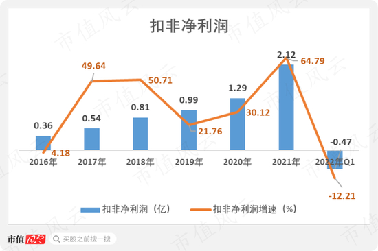 2021年的扣非净利润增长至2.12亿,同期复合增速为42.6%,表现也相当不错。