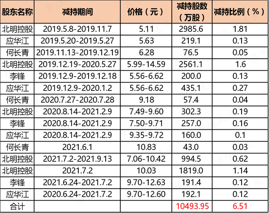 集多个概念于一身,此时不卖,更待何时。从2019年5月至2021年7月,北明控股、李锋、应华江和何长青合计抛售股权达1.05亿股,减持比例为6.51%。由于仅公布减持价格区间,具体减持金额无法估算。