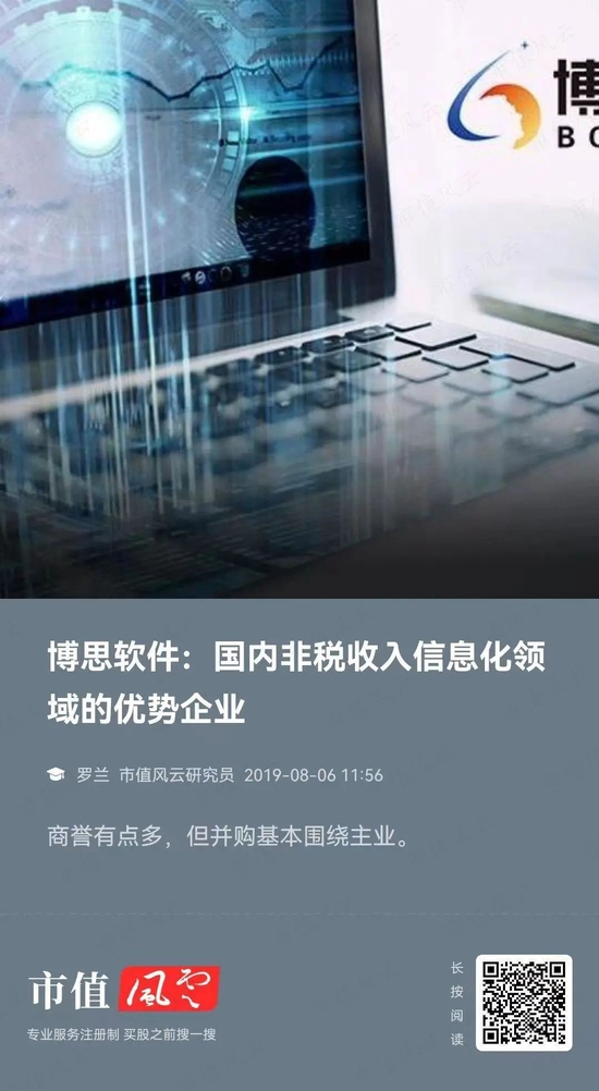 持股8.27%的博思软件是国内电子票据和政府采购信息化领域的龙头;