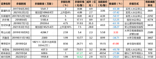 而绝味食品(603517.SH)和神州信息(000555.SZ)最近才疑似通过二级市场买入,真实成本不详,根据区间均价计算估计为4.1亿和2.9亿元。