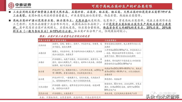 可用于高纯石英砂生产的矿品类有限