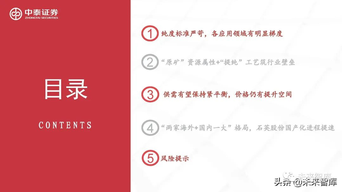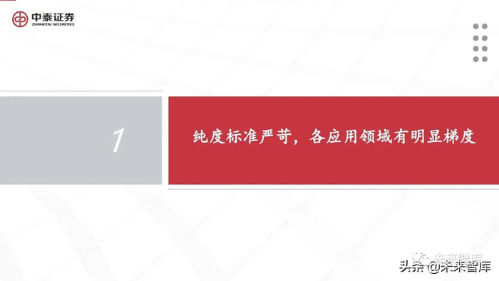 1 纯度标准严苛,各应用领域有明显梯度