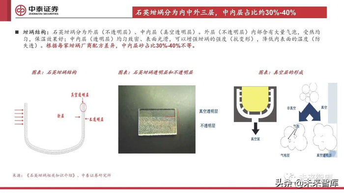 石英坩埚分为内中外三层,中内层占比约30%-40%