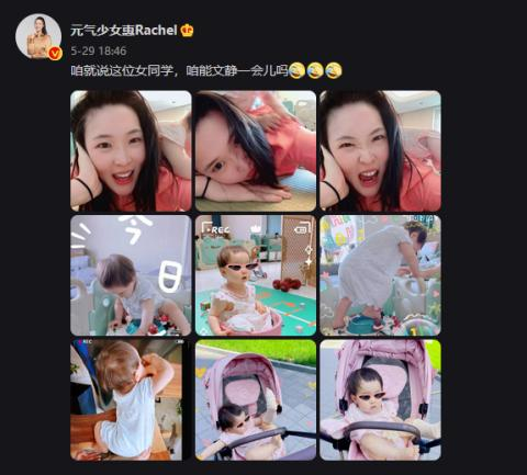 5月29日晚,惠若琪在个人社交账号上晒出她和女儿的合照,并配文称:“咱就说这位女同学,咱能文静一会儿吗?”