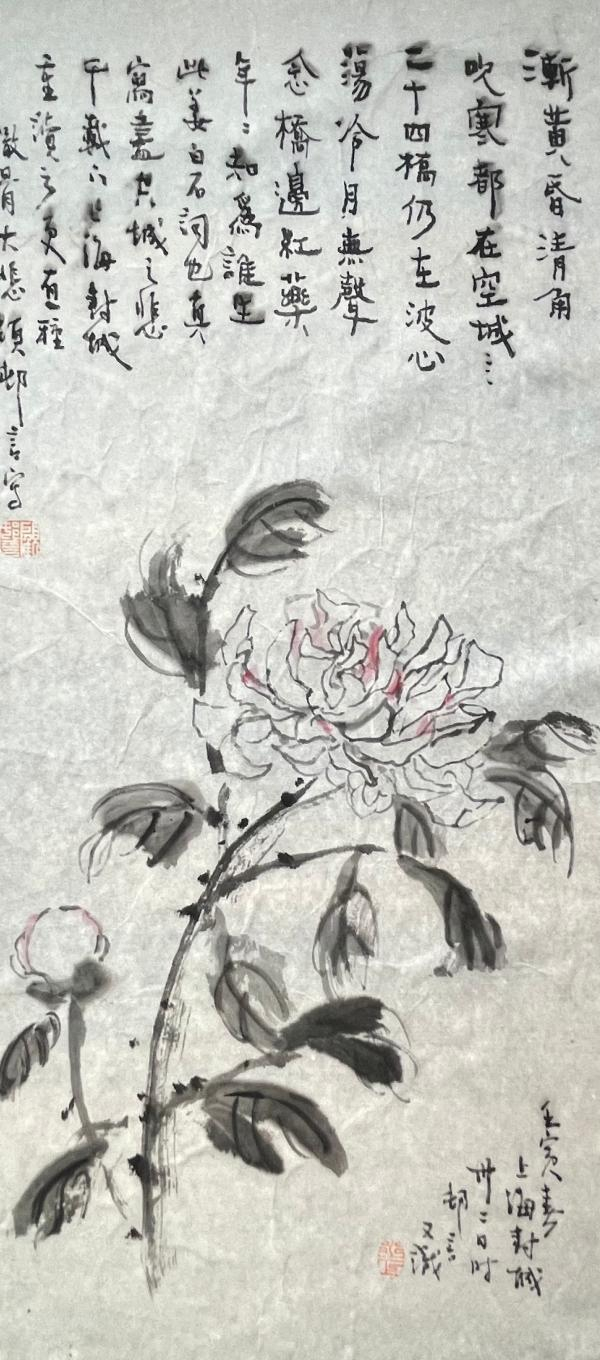 “有葱真富贵,无病即神仙”。林兄策划“葱荣岁月·云摄影展”,啸聚海上,自娱娱人。遂养葱于案头之壶,留影《令壶葱》,且涂写《有葱真富贵》。