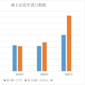一位酒行业专家表示:“威士忌经过十多年的的市场孕育和积累,目前已逐步起量,从市场数据来看,威士忌特别是单一麦芽威士忌的增长势头明显。”据海关数据统计平台,国内威士忌2021年进口总规模为3028万升,进口金额为4.63亿美元,总规模(升)同比增加43.9%,总金额同比增加92%。