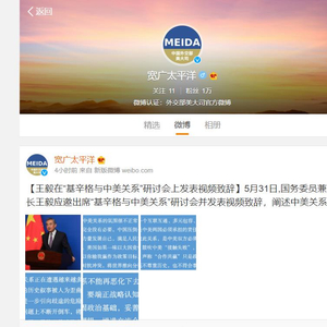 中国外交部美大司(北美大洋洲司)开通微博,名字为“宽广太平洋”。