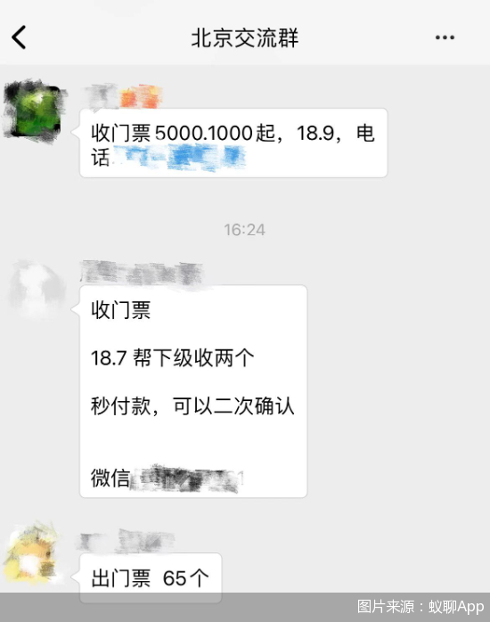 5月31日,北京商报记者在蚁丛旅游官方交流平台“蚁聊”App内注意到,不时有用户发布自身买、卖门票需求,同时标明价格和联系方式。“收门票1000,加蚁聊好友备注数量”“收门票500,在线秒付”等消息层出不穷。