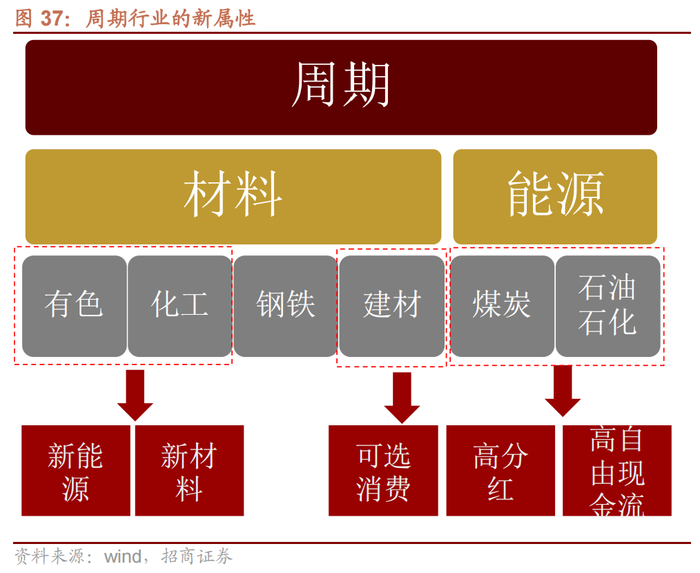 而部分周期行业中受益于新医疗、新材料和新能源的发展,更是具备了较强的成长性,进一步降低了对经济周期波动的敏感性。