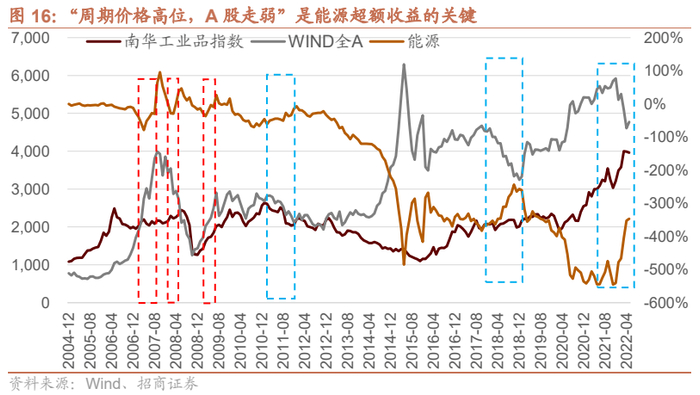 “周期价格高位,A股走弱”是周期风格中——能源指数超额收益的关键。