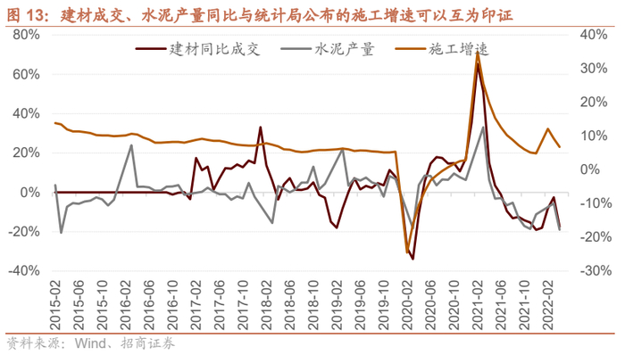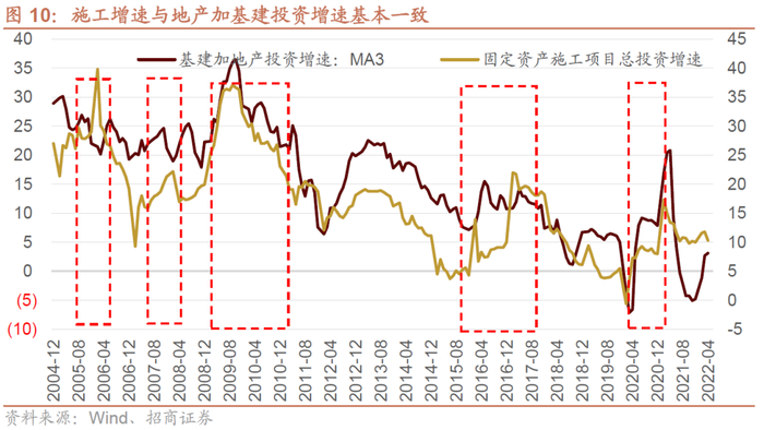 国家统计局统计的基建加地产投资增速和固定资产施工增速和趋势基本一致。