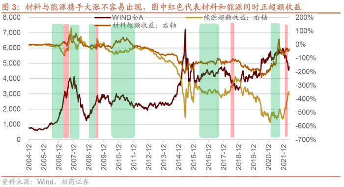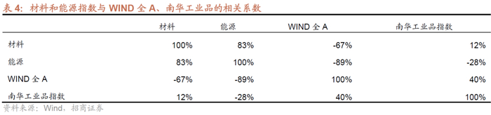 ⚑ 首先,无论是材料还是能源,他们大部分时候在市场上涨的时候跑不过WIND全A,因此,与WIND全A负相关性较高;