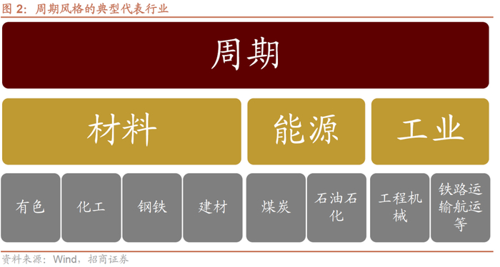 在通常的定义中,周期风格是指与经济相关度非常强,且盈利很大程度与商品价格波动相关的板块,典型的代表性行业是材料、能源、工业里面的部分行业。