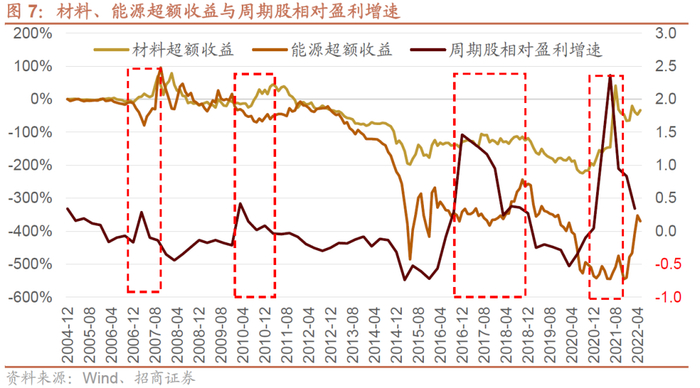 从周期股的超额收益与盈利周期来看:
