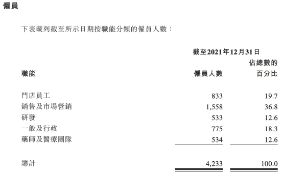 此外,截至2021年末,圆心科技的研发人员数目相对较少,为533人,而销售及市场营销员工人数为1558人,为研发人员数目的近3倍。