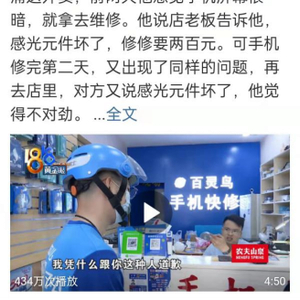 而这些“山寨维修店”鱼龙混杂,乱象丛生,也给许多消费者造成严重困扰。不光是热搜上的“调亮度收费200元”,无独有偶,记者身边一位朋友,前不久也曾在山寨维修店里有过“开盖吹一口灰尘收费150元”的遭遇。