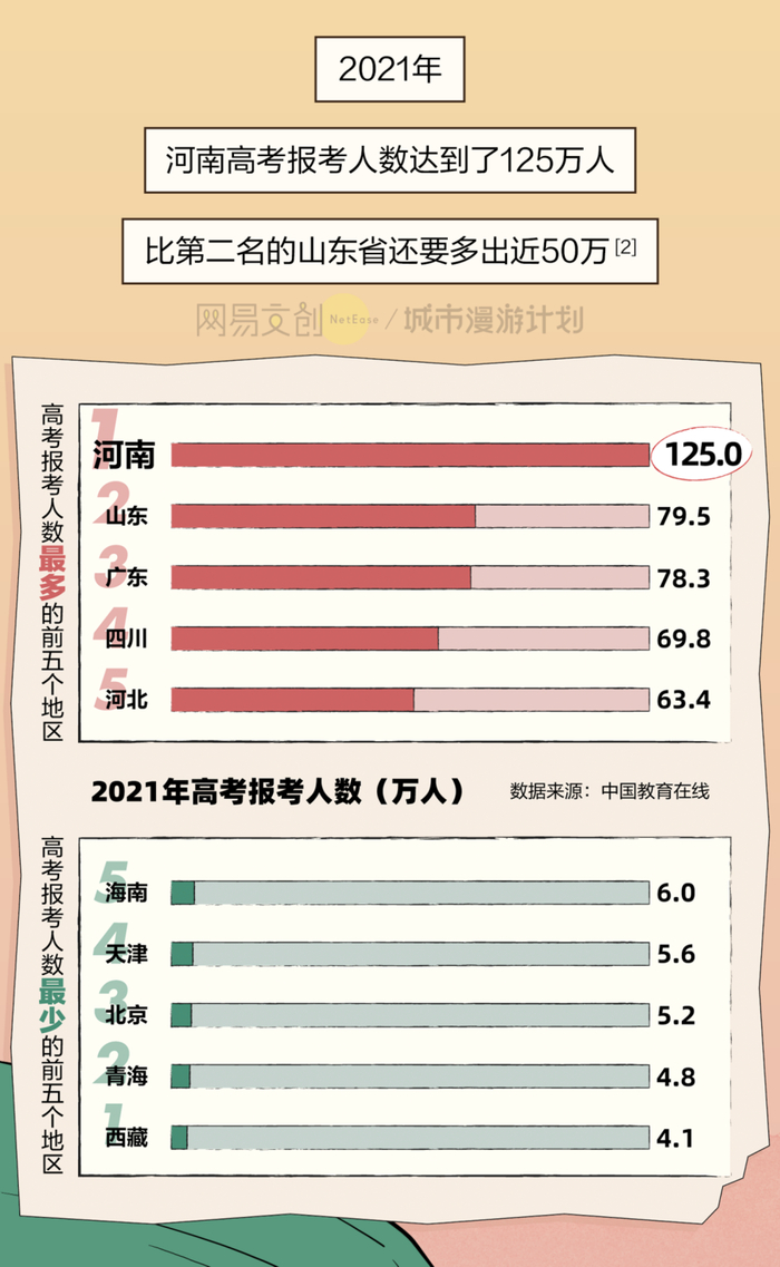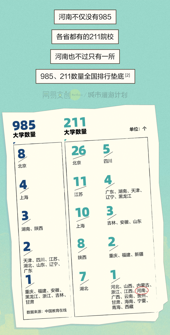 高考是属于万千中国人的共同记忆,各省高考都有各的难处,而河南则难在考生多、好学校却少。这个人口大省有着最多的高考人数,却没有一所985,连211也只有一个。