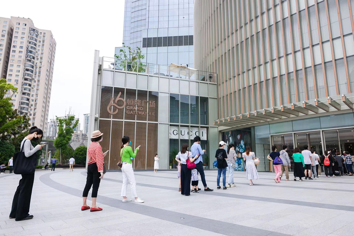 儿童节当日,港汇恒隆广场、美罗城、太平洋百货、汇金百货(徐汇店)、上海六百、汇联商厦、东方商厦(旗舰店)、One&Two ITC商场、百联徐汇商业广场、衡山坊、永新坊等11家商场携千余家品牌商户开门迎客。其中,港汇恒隆广场LV、GUCCI等一线国际奢侈品牌全面开业,首日品牌复市率近80%。