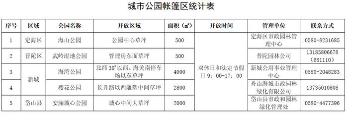 据文件要求,这些公园内只能搭中小型的家用帐篷,占地面积小于5平方米,高度不超过1.5米,不得栓树、使用脚钉固定等,且不能使用全封闭帐篷。