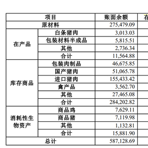 双汇发展披露存货清单,牧原股份解释不计提跌价准备的原因