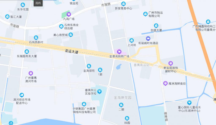 规划地块周边,生活氛围比较浓重,周边有金港湾购物中心、番禺政务服务中心、番禺报业广场、美心商贸城等。