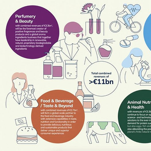 总收入为33亿欧元,将成为积极的香水和美容产品以及全球芳香成分业务的主要创造者,共同在可再生、天然、可生物降解和生物技术衍生成分方面进行创新。