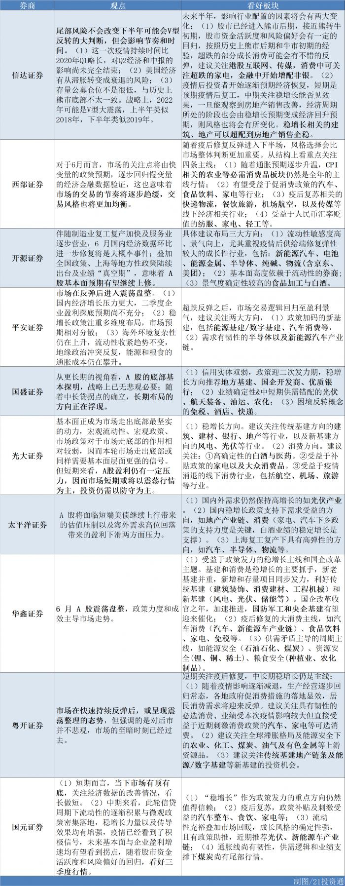 据不完全统计,截至目前,已有近20家券商发布了2022年6月投资组合和最新市场观点。