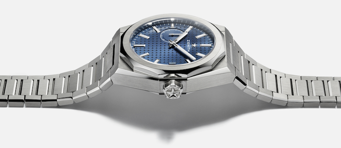 2022年真力时推出了DEFY系列的全新产品线——Skyline。这款定位于系列入门级的腕表,采用简约小三针设计,9点钟方向的秒针具备1/10秒显示功能。DEFY Skyline一改DEFY系列往日以钛金属为主的表壳,选择使用精钢材质打造。太阳纹表盘采用富有几何美感的布局结构,镌刻的四芒星颗颗排列整齐,构成精妙和谐的图案,宛若绮丽苍穹,闪烁熠熠星光。事实上,四芒星图案源自20世纪60年以现代手法重新演绎的真力时“双Z”品牌标志。