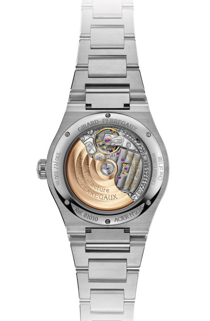 承袭1975年初款的基因,Laureato桂冠系列42毫米永恒腕表采用一体式表带。每一个链节均经过抛光或拉丝工艺处理,呈现了为钟表迷们赞赏的光影交互的大气效果。腕表将反差饰面相结合的设计还延伸至表壳和表圈,营造出富丽奢华的气息。GP01800机芯由品牌位于拉绍德封的制表厂打造。这款自动上链机芯配备玫瑰金自动陀,饰以圆环形日内瓦波纹。