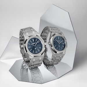 作为庆祝Royal Oak皇家橡树系列诞生50周年的第一批腕表,全新精钢款“Jumbo”腕表保留了1972年Royal Oak皇家橡树系列原作的标志性设计。精钢表壳和表带经以手工缎面打磨和抛光倒角处理,表盘上饰以经典的“Petite Tapisserie”小格纹图案,采用“夜色蓝,云50”配色。