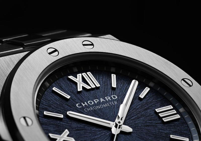 表圈上装饰8颗螺丝,是腕表极具辨识度的设计元素之一。Alpine Eagle的设计贯穿“雄鹰”主题,表盘岩石般的纹理打磨,来源于雄鹰的虹膜,而特殊的蓝色,会让人联想起阿尔卑斯山脉上的冰川,指针的设计和猛禽的羽毛非常相似。其搭载的是萧邦Cal.01.01-C型自制机芯,获得了瑞士天文台认证,并且拥有60小时的动储时长。