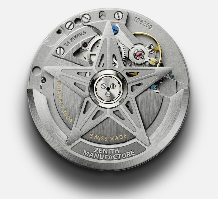 El Primero 3620正是一枚高振频机芯,它在El Primero 3600的基础上改进而来,相应的移除了计时模块。它的振频可达36,000 次/小时(5Hz,10振动),具备同样的60小时动储,目前仅供DEFY Skyline系列使用。别致的12边形设计,平面垂直拉丝打磨,倒角部分抛光处理,两种不同的工艺相互交织层次分明,细节观感丰富。同时,6,5000的售价在同级产品中也颇具竞争力。