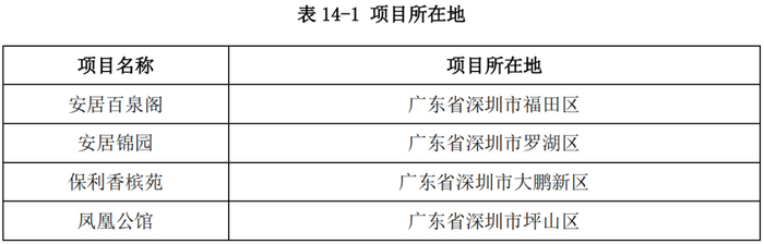 和凤凰公馆项目 4 个保障性租赁住房项目,分别位于深圳市福田区、罗湖区、大鹏新区和坪山区。