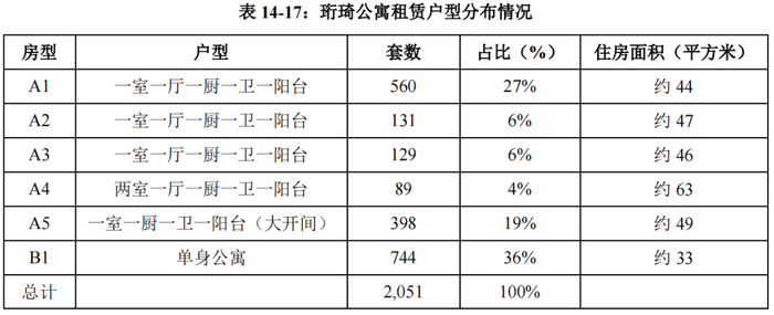 珩琦公寓于 2020 年 3月竣工,由 5 栋钢混结构建筑物组成,共计 2,051 套房源,总建筑面积为 85,678.79 平方米。截至 2022 年 3 月 31 日,珩琦公寓出租率 99.11%,已出租部分加权平均月租金单价为 30.52 元/平方米/月(含税)。