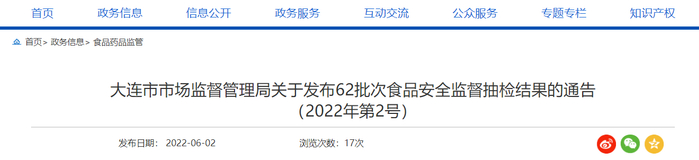 中国质量新闻网讯 2022年6月2日,大连市市场监督管理局网站公布62批次食品安全监督抽检结果。本次公布的抽检信息涉及20批次乳制品,合格率为100%。