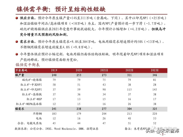 1 镍供需平衡:预计呈结构性短缺