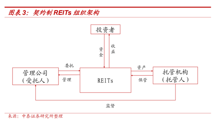 以较为成熟的美国市场为例,美国REITs的组织类型主要分为契约型、公司制、有限合伙制。