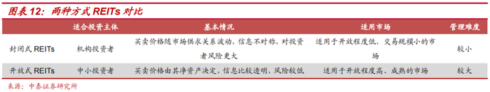 3)从最低投资额来看,公募上市型REITs的入门门槛较低,仅需1股便可参与到REITs产品的投资之中,而私募型REITs的入门门槛相对较高,会将部分小额投资者拒之门外。