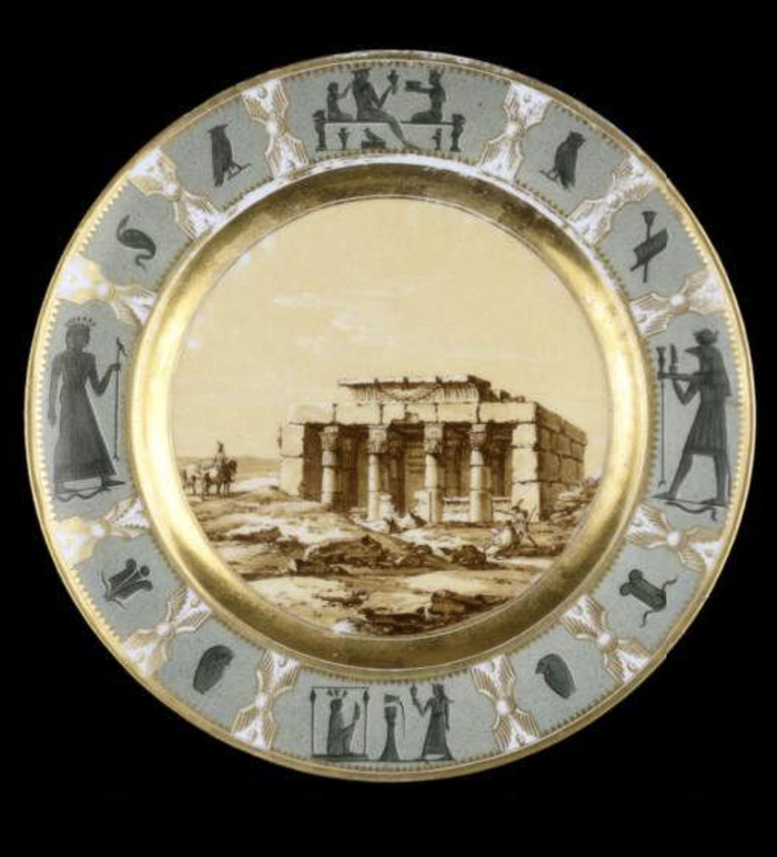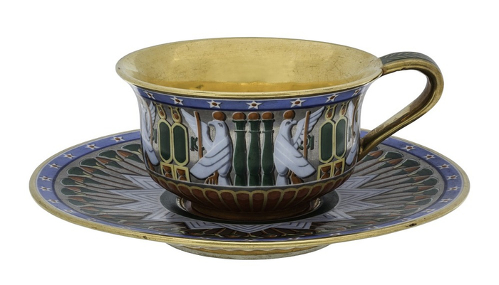 在圣赫勒拿岛时,拿破仑虽然对食物不怎么感兴趣,但却常喝咖啡。每天早上6点吃早餐时喝咖啡,10点吃完午餐后也喝咖啡。8点开始的晚餐将要结束的时候,他总是要喝从一个银壶倒在他那些价值不菲的杯子里的咖啡,杯子是拿破仑在1806年命令塞夫尔瓷器厂特别制作的。这些杯子很小,蓝色,上面用镀金的象形文字和仿照维旺·德农(Vivant Denon)《埃及景象》中的画面来装点。宾厄姆注意到了这些杯子,他说:“餐后甜点盛在塞夫尔瓷盘里,配着金制的刀叉和汤匙端上来。那些咖啡杯是我见过的最漂亮的杯子,每一个杯子上各有一幅埃及画面,承杯的浅碟上则各有一位名人的画像。在法国,买这样的一个配着浅碟的杯子要花费25个几尼。”