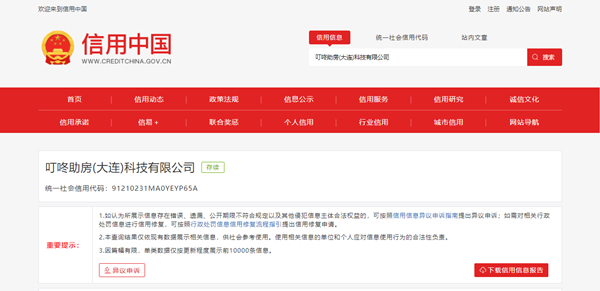 中国网财经6月1日讯 (记者 钟文鑫)据信用中国网站消息,叮咚助房(大连)科技有限公司因发布不当广告被罚2.02万元。