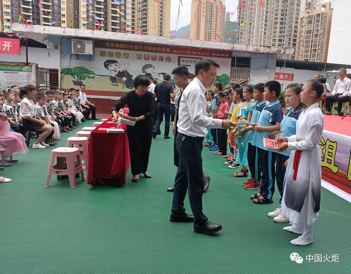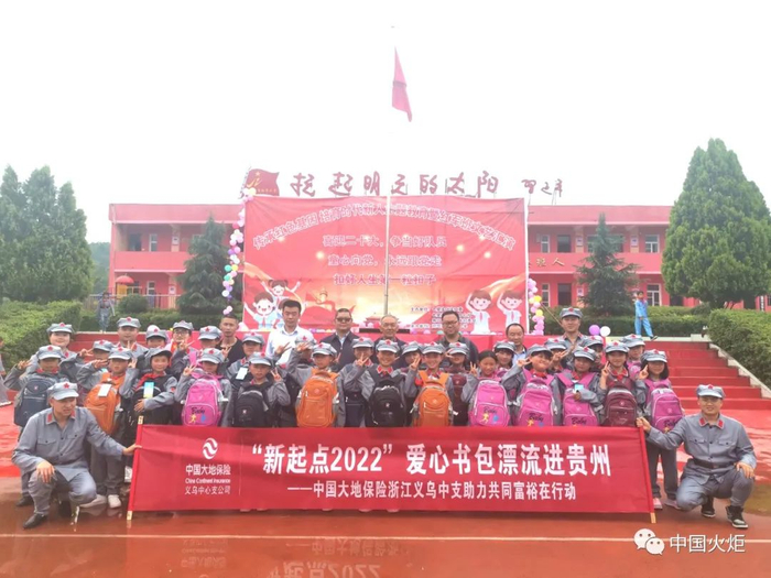 6月1日,七星关区关工委牵手中国大地保险义乌中心支公司,“新希望2022·爱心书包漂流”进贵州毕节公益行动走进七星关区鸡鸣三省红军小学,捐赠价值2万元的装满“爱心”的崭新书包等