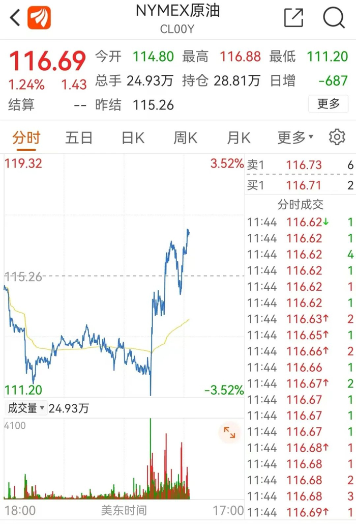 受消息刺激,国际原油期货迅速反弹,其中,NYMEX原油期货从下跌3.52%直线拉升至翻红;美股新能源汽车股也加速上涨,截至发稿时,特拉斯涨近7%,Rivian涨近6%。