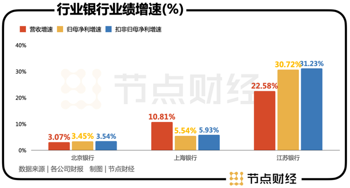 相比之下,资产规模紧随其后的上海银行(2.65万亿)和江苏银行(2.62万亿),前者2021年营收、归母净利润、扣非净利润分别同比增长10.81%、5.54%、5.93%,后者更是高达22.58%、30.72%、31.23%。