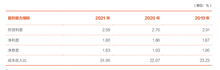 2021年北京银行利息净收入513.97亿元,较2020年减少0.4%,占营业收入比重为77.55%;净息差1.83,较2020年降幅达差不多一个0.1百分点,2022年一季度继续下降至1.72。