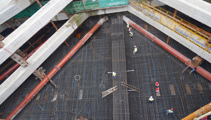 黄茅海跨海通道主塔钢筋开展整体吊装
